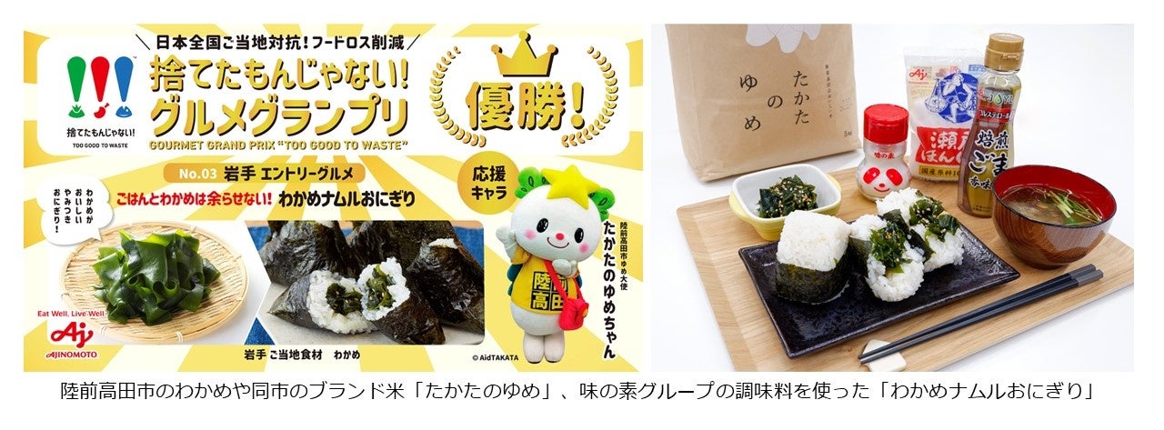 グランプリに輝いた岩手のご当地食材・わかめを使った「ごはんとわかめは余らせない! わかめナムルおにぎり」には、投票者から「家にあるもので簡単に作れた」「次は白ゴマを入れてアレンジしてみたい」などのコメントが寄せられ、手軽に試せる点などが評価されました。2位は佐賀のご当地食材・海苔を使った「使い切り! 玉ねぎの海苔ナムル」、3位は香川のご当地料理・うどんを使った「1玉使い切り!うどんかりんとう」となりました。