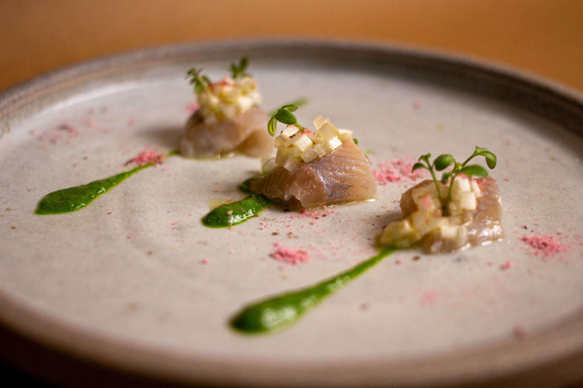 FUSOUのシェフを務めるのは、⻁ノ⾨ヒルズの8席限定の予約困難なアニバーサリーレストラン「unis」のスーシェフを務めた内田悟。全国各地の生産地を訪れる旅で出会った四季が織りなす選りすぐりの食材が、内田がこれまで培った経験と感覚で組み合わさり、フレンチの技法によって、繊細で意表をつく、ひと皿に。ここでしか体験できない、FUSOUならではのクリエイションをご堪能いただけます。