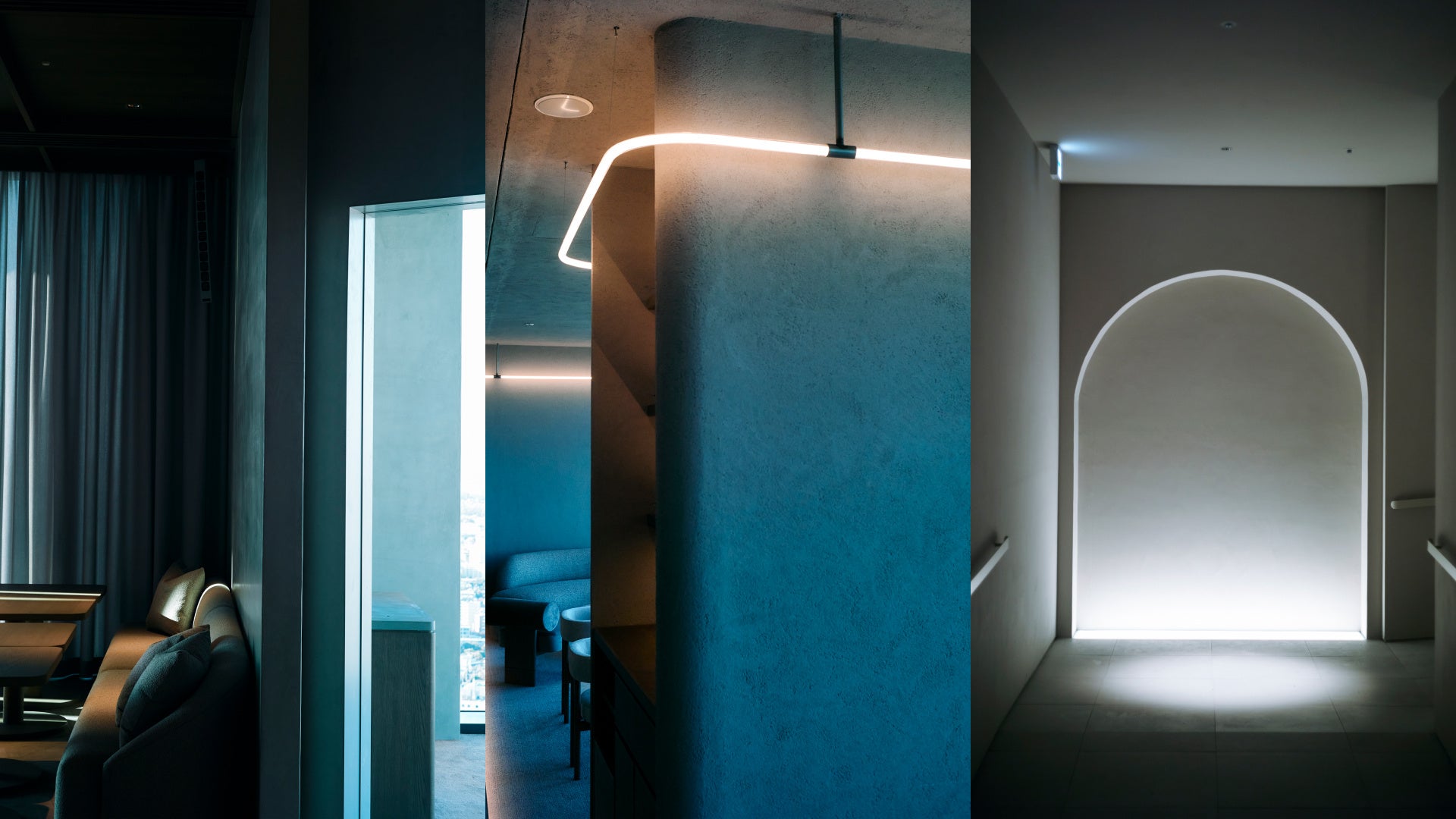 渋谷の街の喧騒から38階の高層階へ移動することで得られる静寂と高揚感を表現した光に包まれた空間でお迎えします。