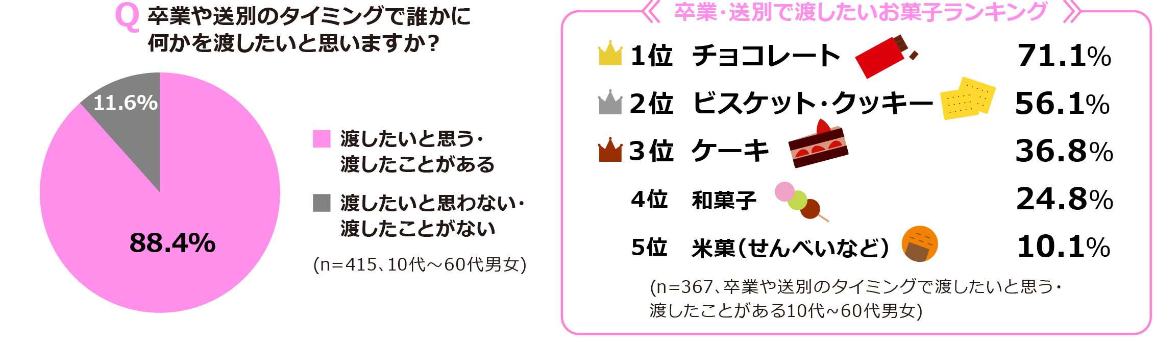 “卒業・送別”の機会に渡したいお菓子No.1は「チョコレート」!