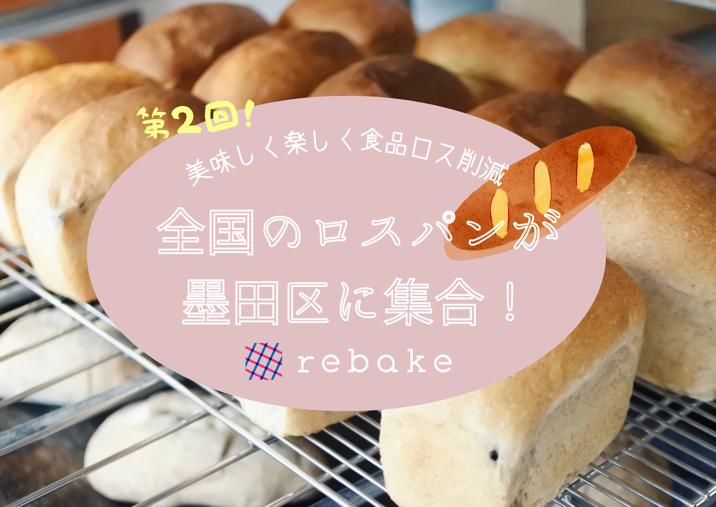 パン屋さんの店頭で売り切れず、廃棄になってしまいそうなパン、「ロスパン」だけを集めたパンマルシェです。墨田区八広にある合同会社クアッガにて、普段からrebakeでロスパンを販売している全国約10店舗のパン屋さんのロスパンを販売します。加えて、フードドライブの実施や、rebakeが作ったロスパンに関するオリジナルのガイドブック「ロスパンの教科書」の配布も行います。このマルシェを通して、ロスパンが出てしまう理由や、ロスパンの美味しさやその価値について、来場者にお伝えします。