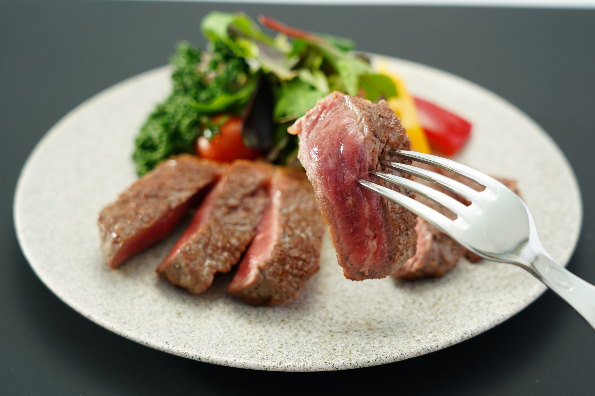 低カロリー、低脂肪でヘルシーな牧草牛から生まれた旨味たっぷりで柔らかなサーロインステーキ。