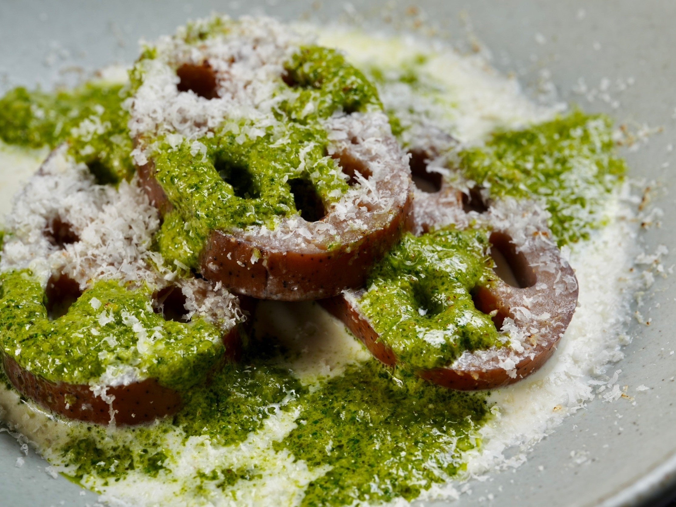 ・加賀蓮根のバジルジェノベーゼ390円(税込429円)