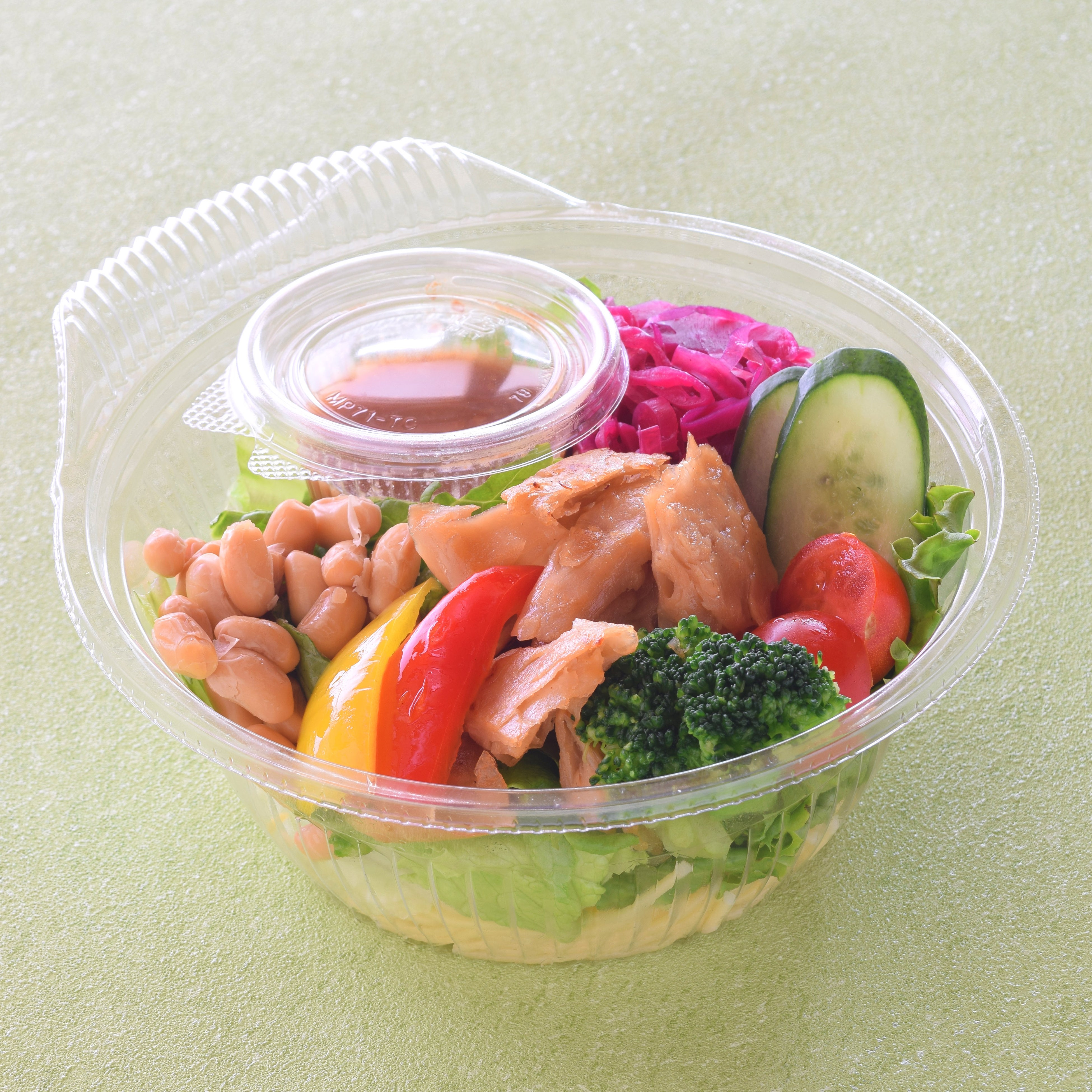 彩りの良い7種の野菜にたっぷりの蒸し大豆とまるで鶏肉のような食感の大豆ミート「LIKECHICKEN!?」が味わえる食べ応えのあるパスタサラダです。期間限定販売となっておりますので、この機会にぜひお召し上がりください。