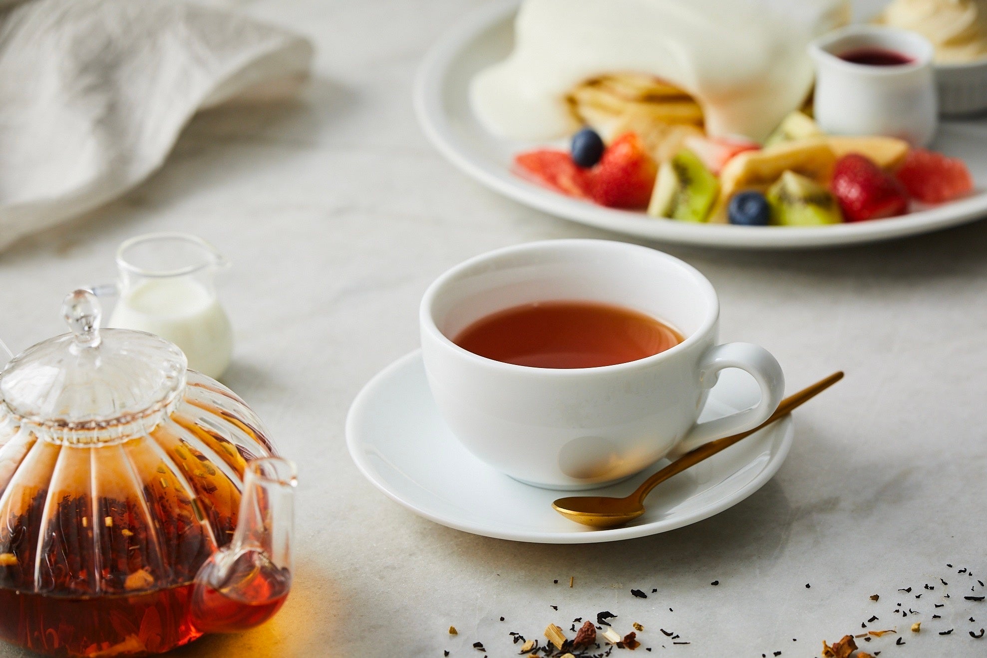 北海道産の発酵バターやその時々で各国から厳選したバターを使いオリジナル配合のパンケーキミックスと豆腐とはちみつを混ぜたふんわりヘルシーなパンケーキと14種類の紅茶&ハーブティーをご提供いたします。