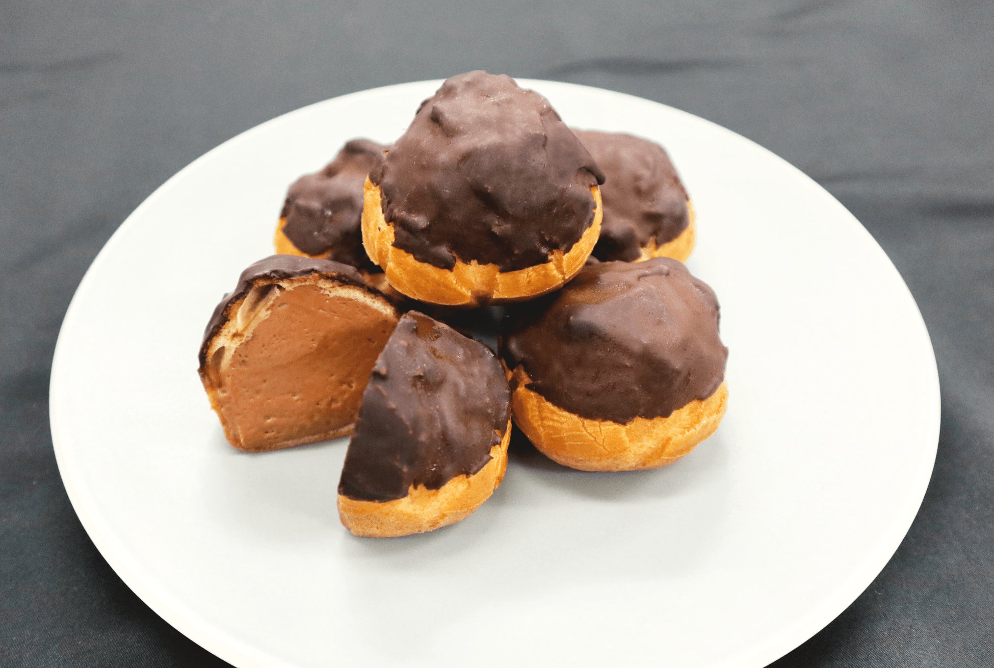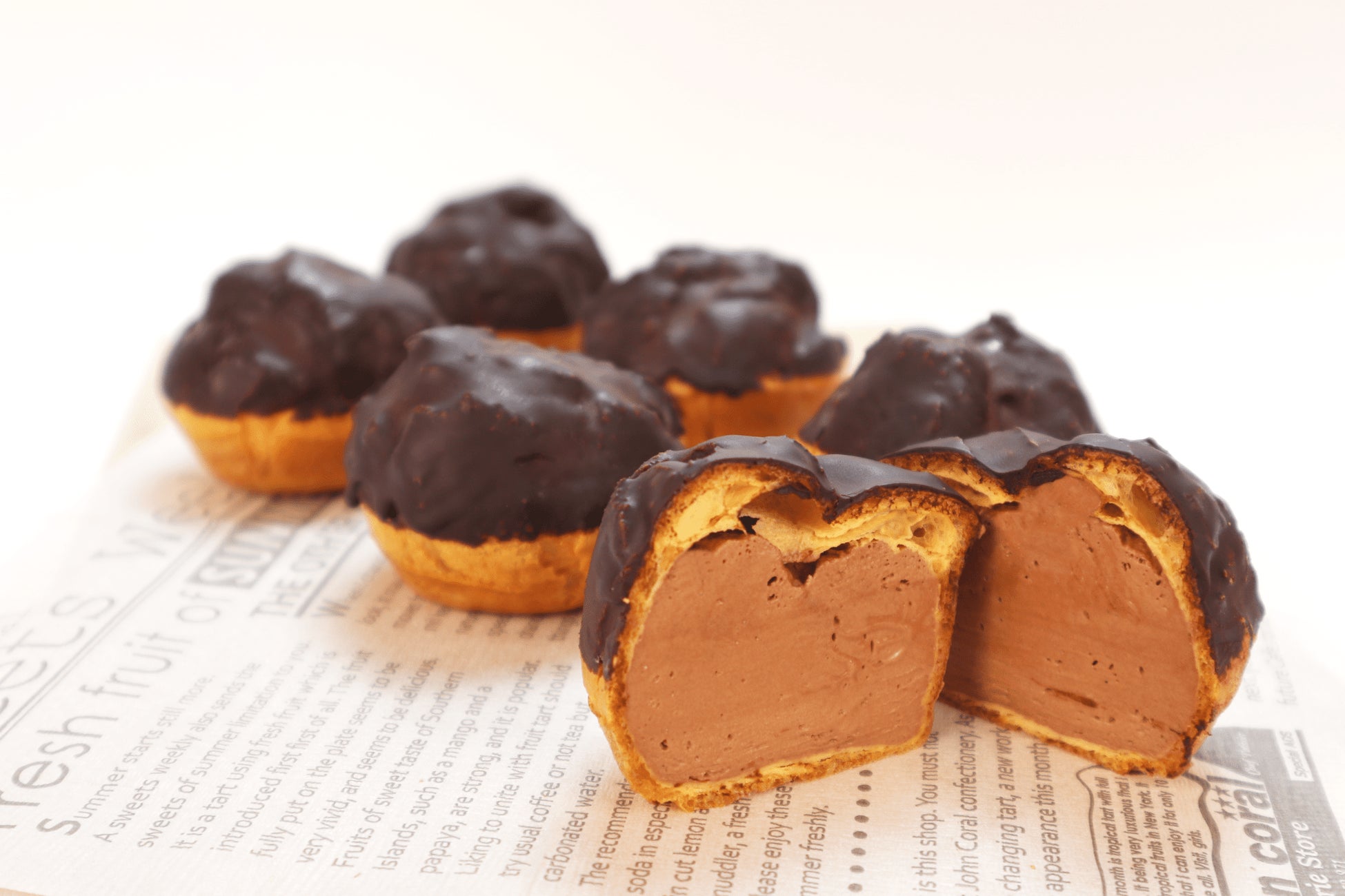 有機牛乳や平飼い卵をベースとしたカスタードクリームにカカオマスと北海道産純生クリームを合わせ、なめらかでコク深く仕上げ、シュー生地にたっぷり詰め込みました。