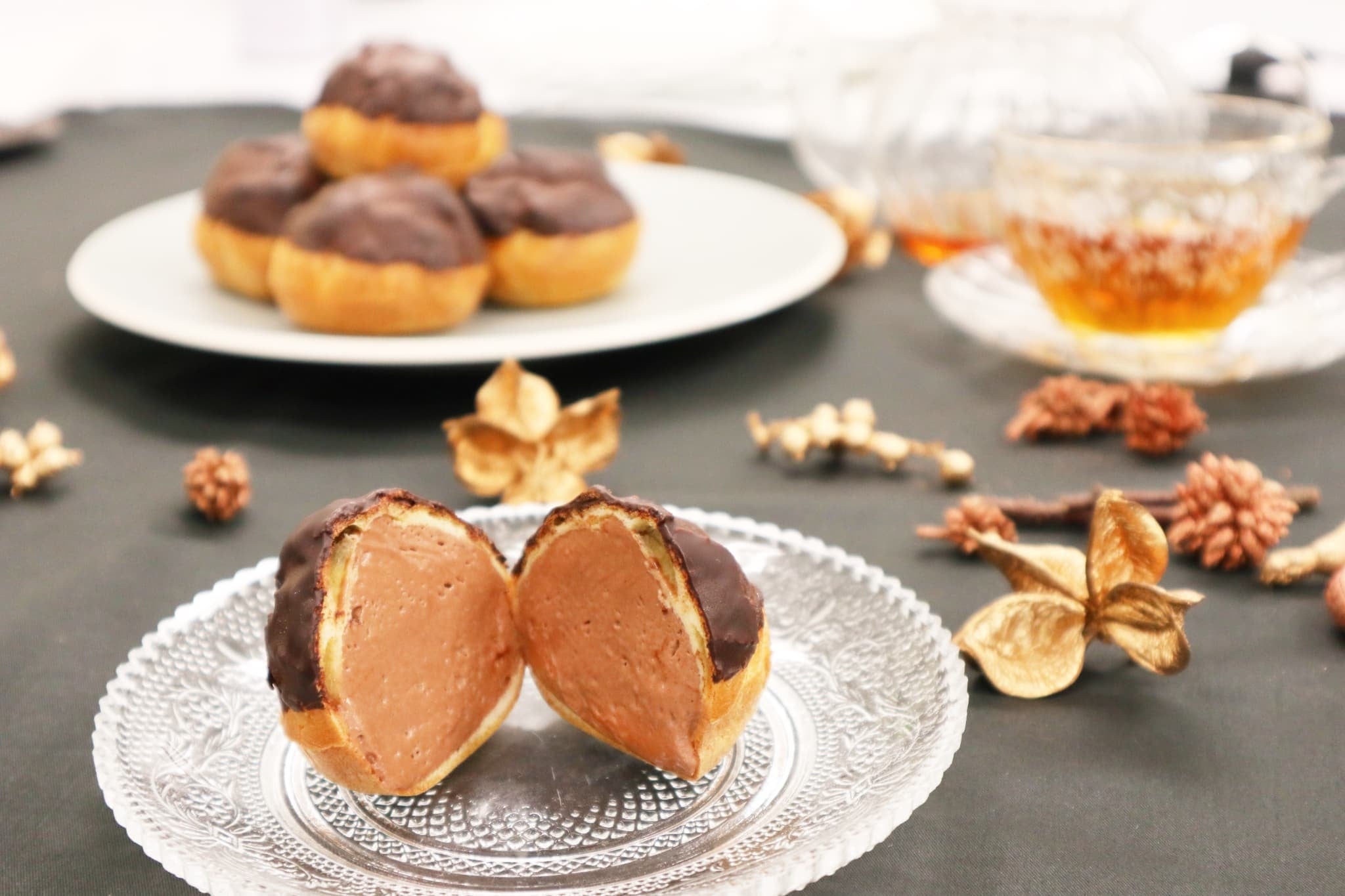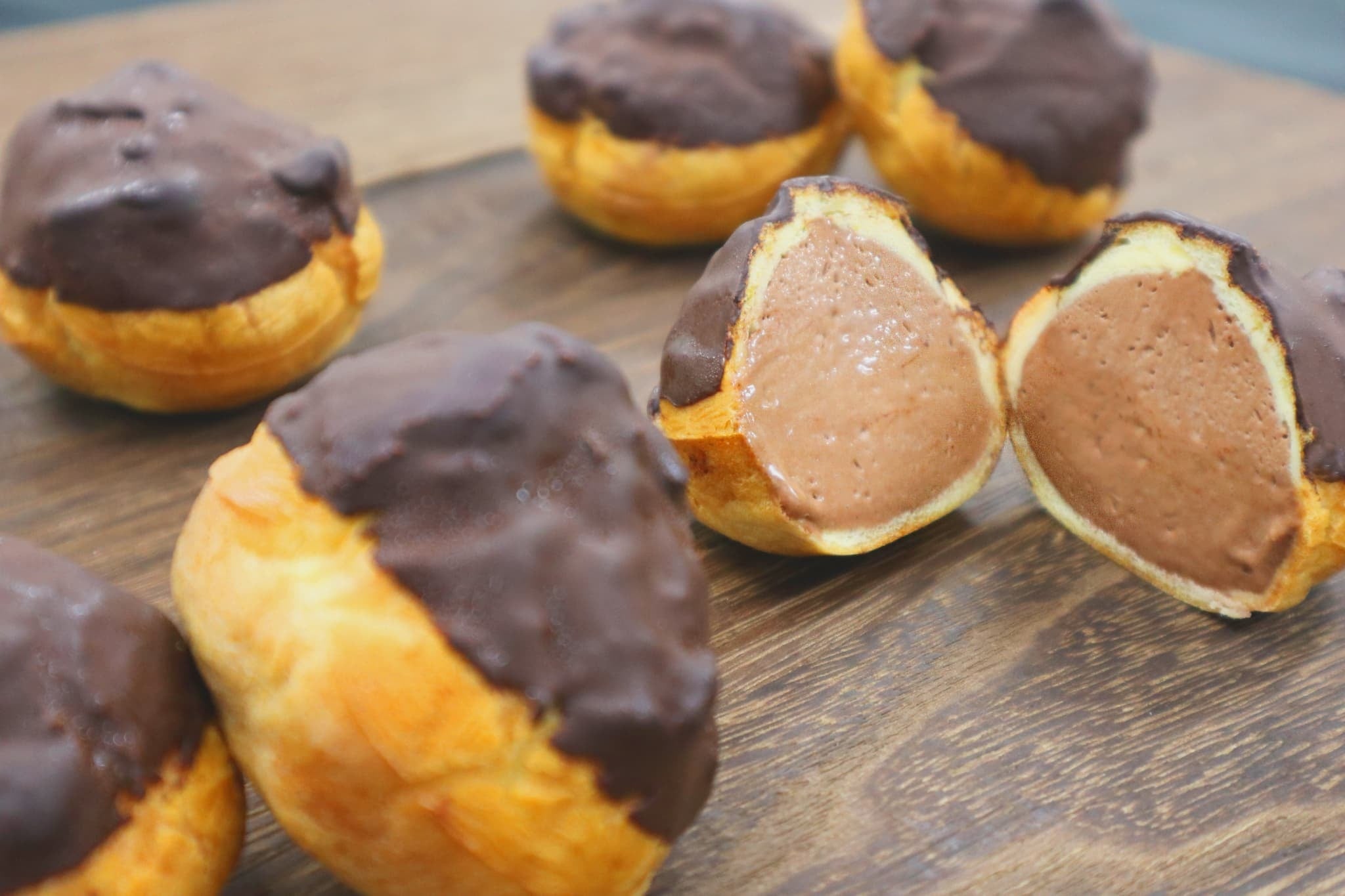 有機牛乳や平飼い卵をベースとしたカスタードクリームにカカオマスと北海道産純生クリームを合わせ、なめらかでコク深く仕上げ、シュー生地にたっぷり詰め込みました。