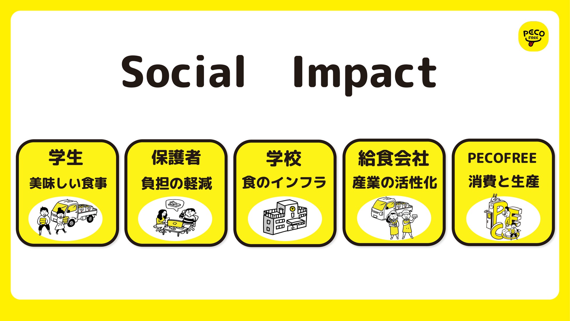 PECOFREEは、これらのソリューションを通じて、共働き世帯の支援、学生の健康と満足度の向上、学校の食に関する課題解決に尽力してまいります。
