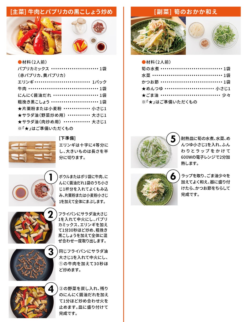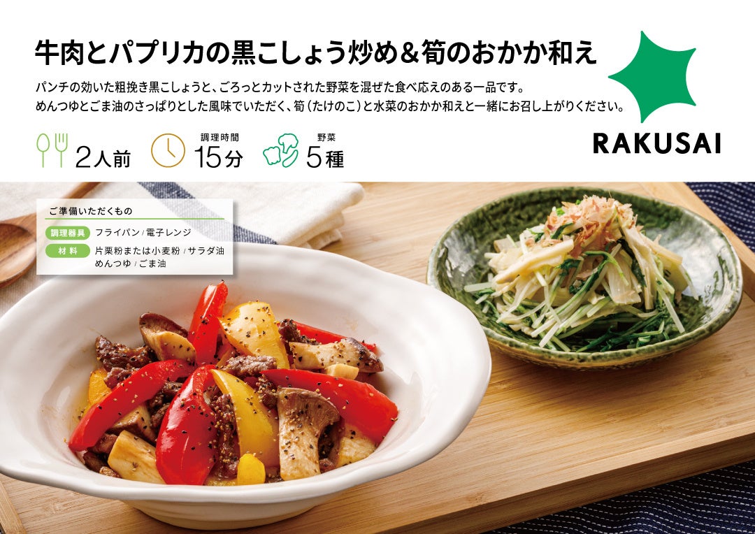 牛肉とパプリカの黒こしょう炒め&筍のおかか和え RAKUSAIオンラインショップ3/11販売