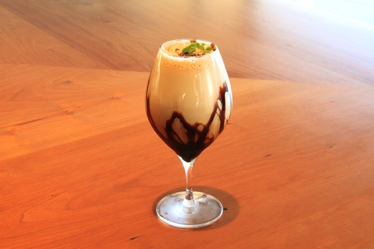 (スモーキーなシングルモルトスコッチをベースにしたスイーツカクテル「スモーキー・モカスムージー」)