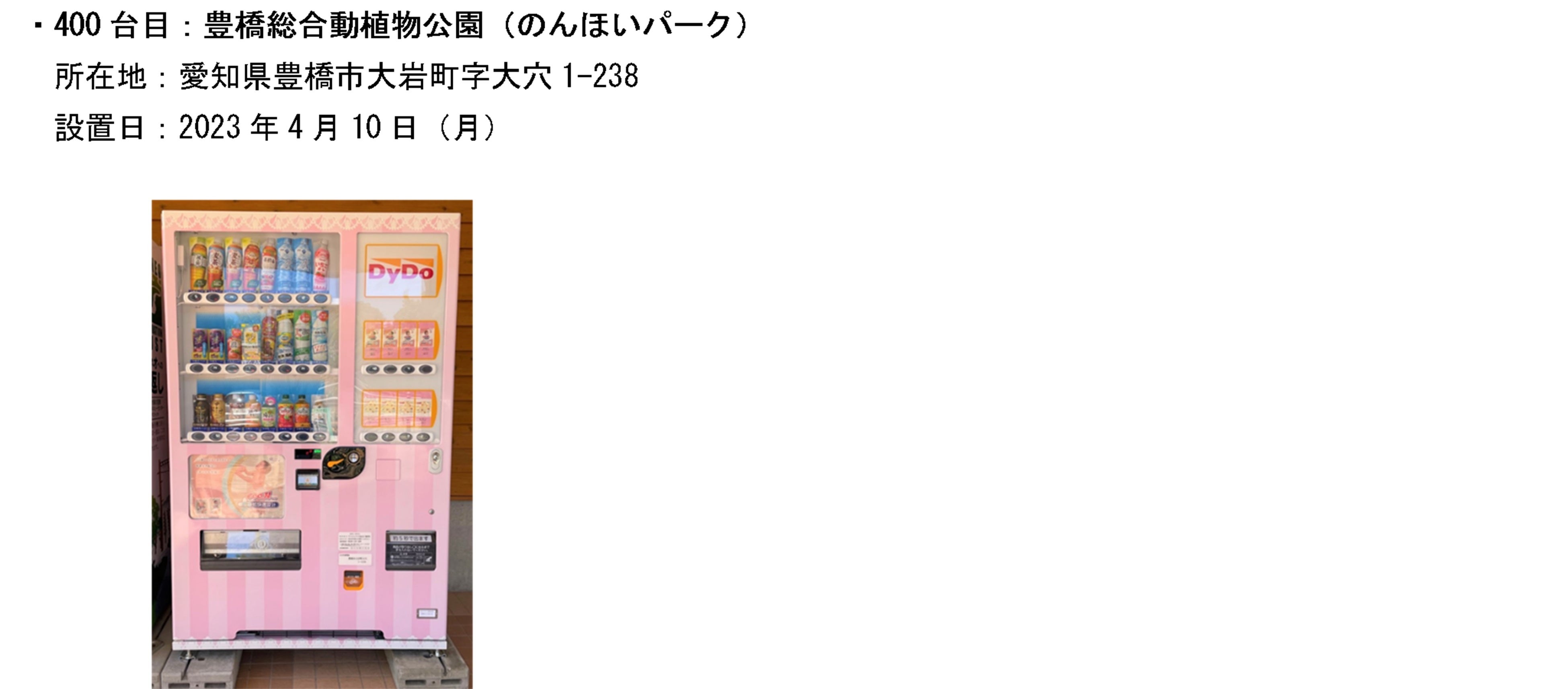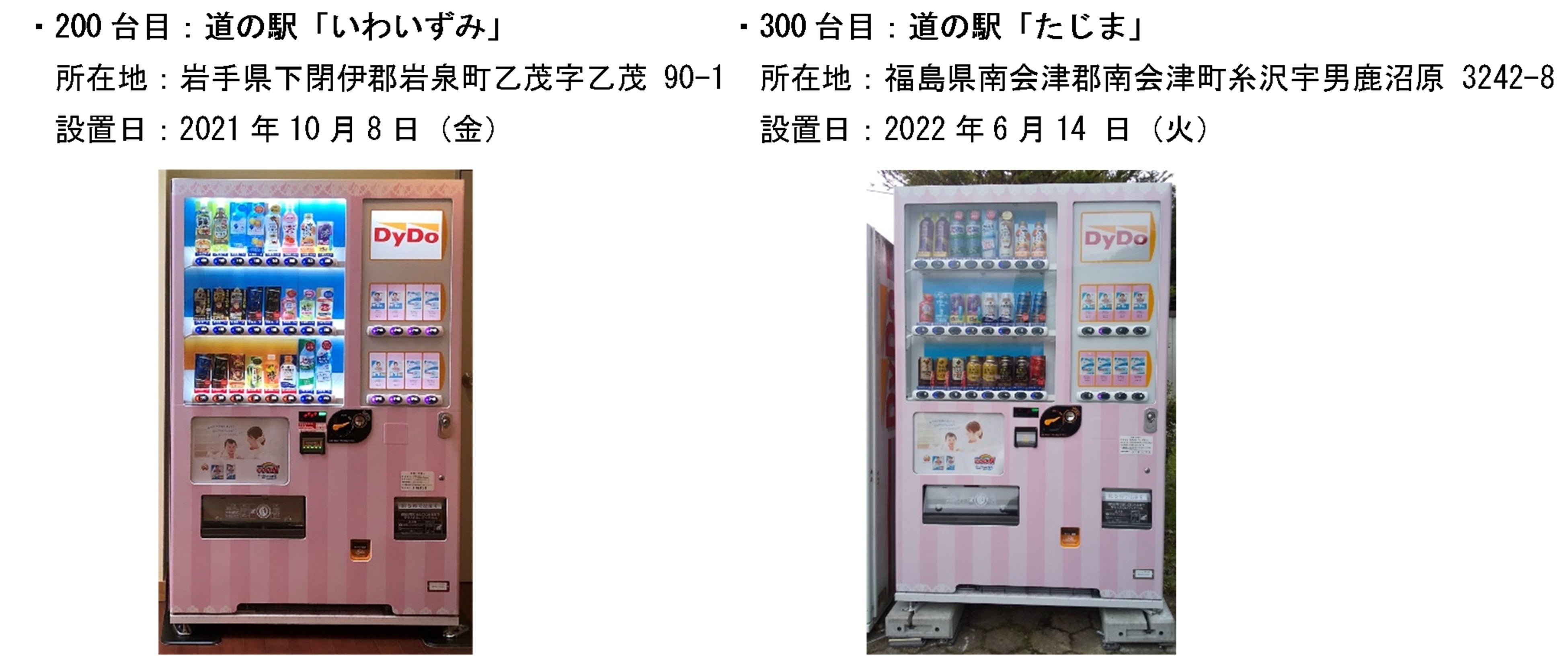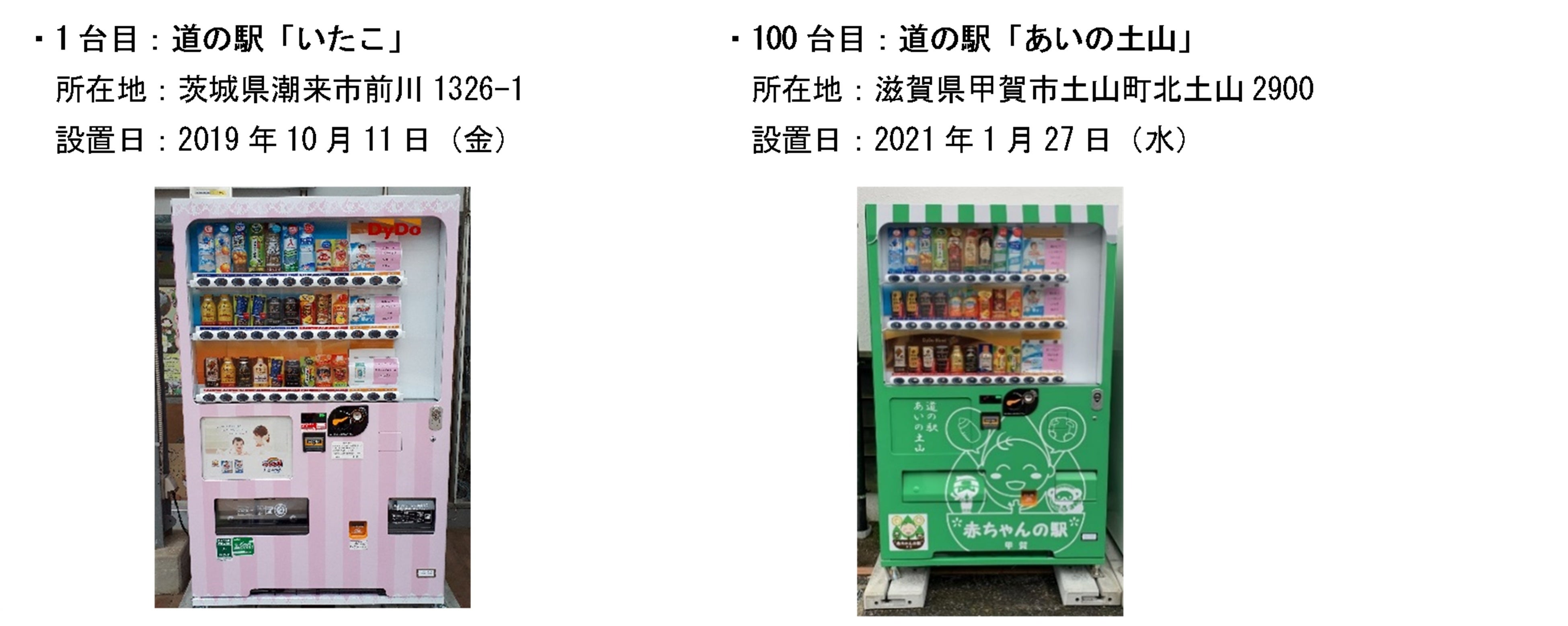 この自販機は、国土交通省から子育て応援施設の整備を加速していくことが発表されたことを受け、ダイドードリンコ、大王製紙株式会社、セコム医療システム株式会社の3社で子育て世代を応援するための取り組みとして、道の駅や大型商業施設など中心に展開してまいりました。そして今回おかげさまで目標としていた500台設置を達成しました。