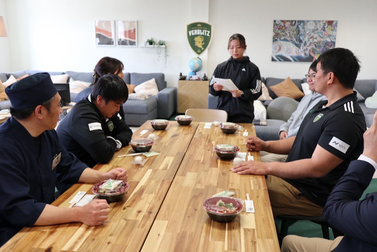 トヨタヴェルブリッツ練習場に学生がオリジナル海鮮丼をお届け
