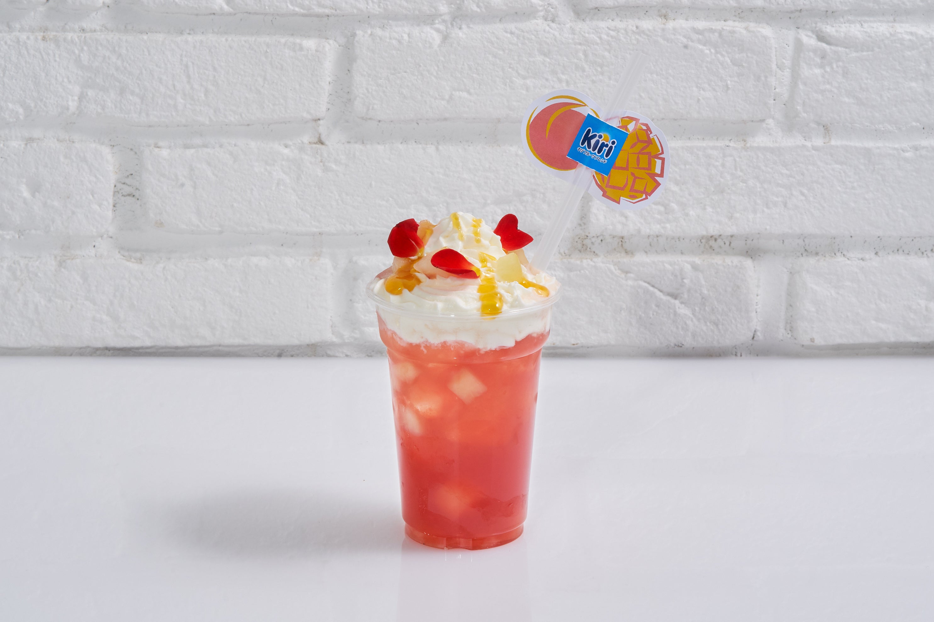 ローズヒップピーチティーに、マンゴーシロップとピーチダイスを入れ、その上に、キリ クリームチーズと生クリームをホイップした贅沢なクリームをのせました。ピーチとマンゴーの優しい甘さとほのかな酸味が特徴のリラックスしたい時にぴったりのドリンクです。