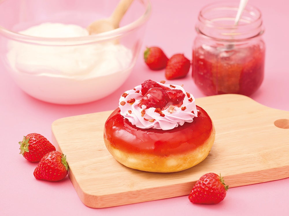 今回登場する『クリスピー・クリーム・プレミアム 東京 トリプル ストロベリー』は、昨年春に東京国際フォーラム店限定で販売しご好評いただいた『クリスピー・クリーム・プレミアム 東京 ストロベリー ショートケーキ』を苺づくしにアップデートした、春にピッタリなドーナツです。