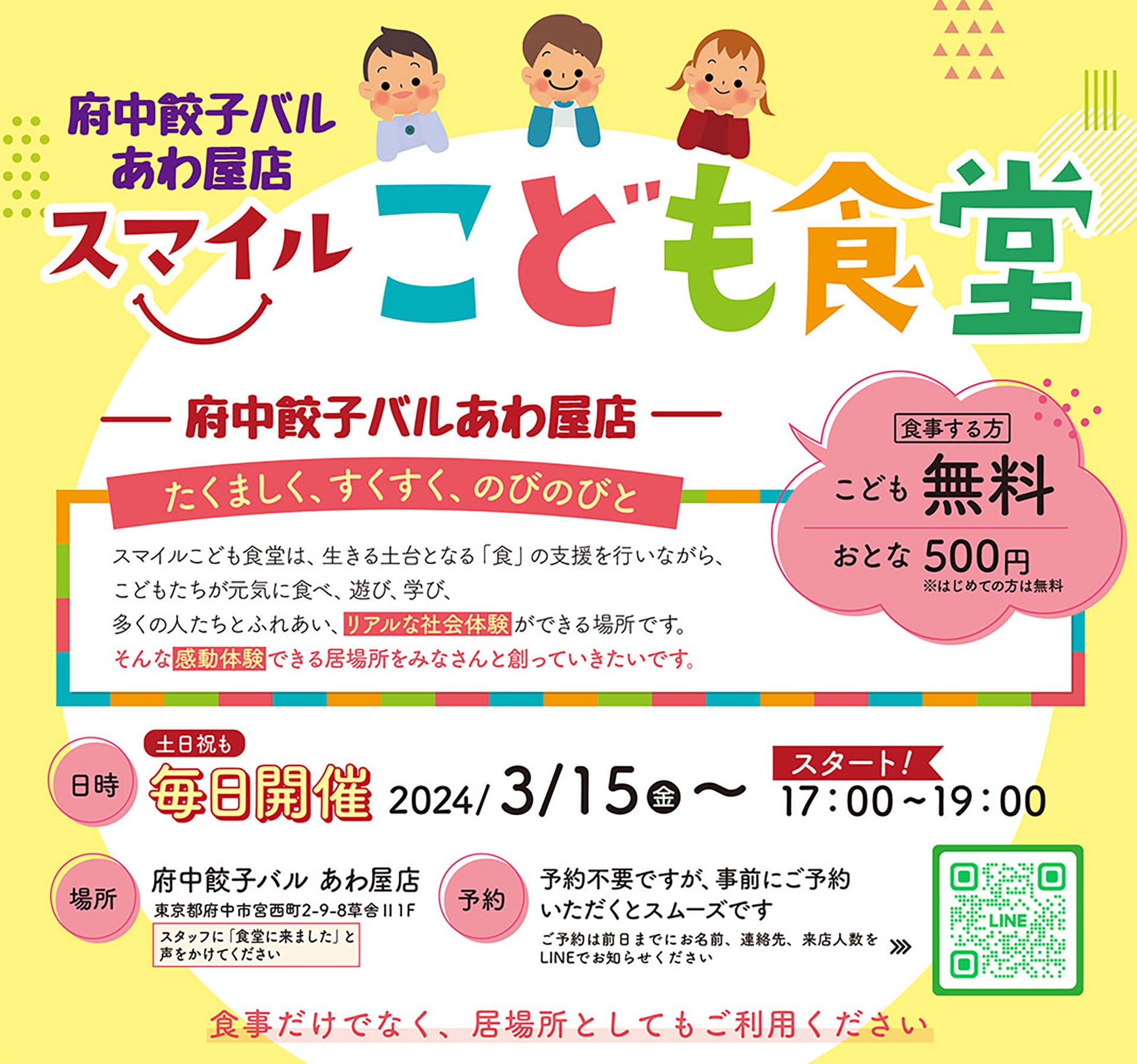 スマイルこども食堂は、こどもたちに「おなかいっぱい食べて元気になってもらう」ことと、「大人になった時に社会を生きていく力を身につけてもらう」ことを目的に運営しているこども食堂です。スマイルこども食堂は飲食店と併設されており、「毎日開催」しているのも特徴です。また、スマイルこども食堂では、食事の提供に加えて、「将来、社会で生き抜く力を身につけてほしい」という願いから、「元気に挨拶する」、「自分でできることは自分で行う」という約束(ルール)のもとで運営しています。