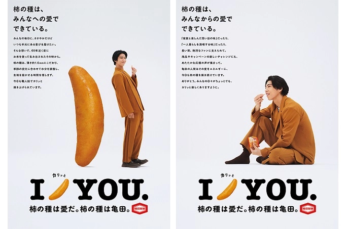 第1弾として、賀来さんを起用した新CMのテーマは、『亀田の柿の種』への愛を表現した「I カリッと YOU.柿の種は愛だ。柿の種は亀田。」です。そのテーマのもと制作された新CM『IカリッとYOU ダンス篇』 『IカリッとYOU うましお篇』 『IカリッとYOU ダンス&うましお篇』は、3月13日(水)より全国で順次放送開始いたします。新CMは柿の種カラーの衣装を纏ってのダンスや、「カリッ」と割れる柿の種の大喝采など、チャーミングで柿の種愛あふれる内容となっています。