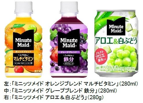 「ミニッツメイド オレンジブレンド マルチビタミン」、「ミニッツメイド グレープブレンド 鉄分」(280ml PET)