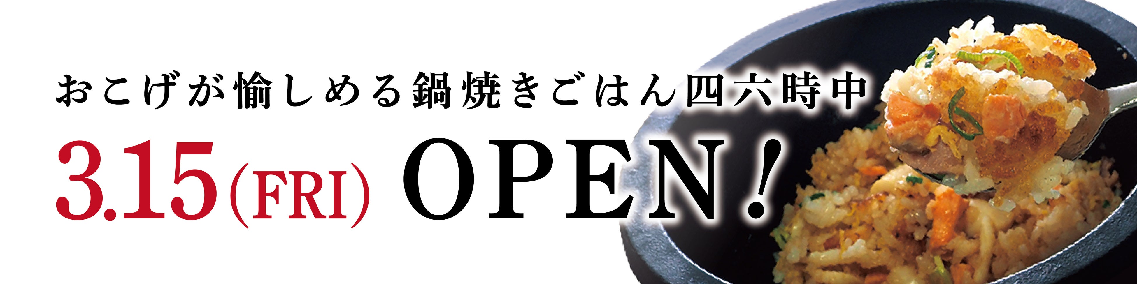 当社は、テイクアウトを主体としたファーストフード業態を新たな成長戦略と位置づけ、立地特性に応じて新業態を展開しております。この度、『海鮮丼・つけ麺四六時中』として営業してきた幕張新都心店を『鍋焼きごはん四六時中』に装いも新たにオープンいたします。『鍋焼きごはん四六時中』の特徴は、220℃に熱した熱々の鉄鍋で焼き上げたパリッと香ばしい「おこげ」。熱々の湯気やジュージューと焼きあがる音、パリッとした食感など、鍋焼きごはんは『五感』で愉しめる新業態です。