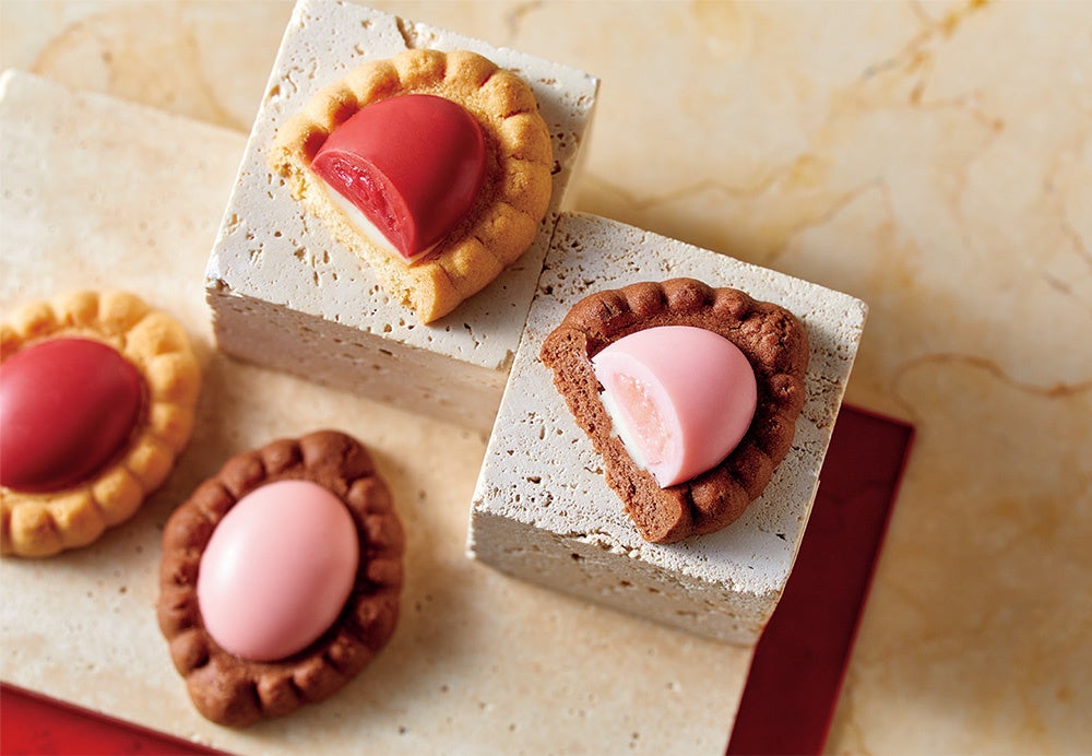 美しいひとつぶの宝石のようなショコラクッキーです。ベリー仕立てのとろけるガナッシュをショコラで包み、カリッと香ばしい食感のクッキーに飾りました。レッドルビーは、フランボワーズのガナッシュ × バター風味のクッキー。ピンクルビーは、苺のガナッシュ × ココア風味のクッキー。