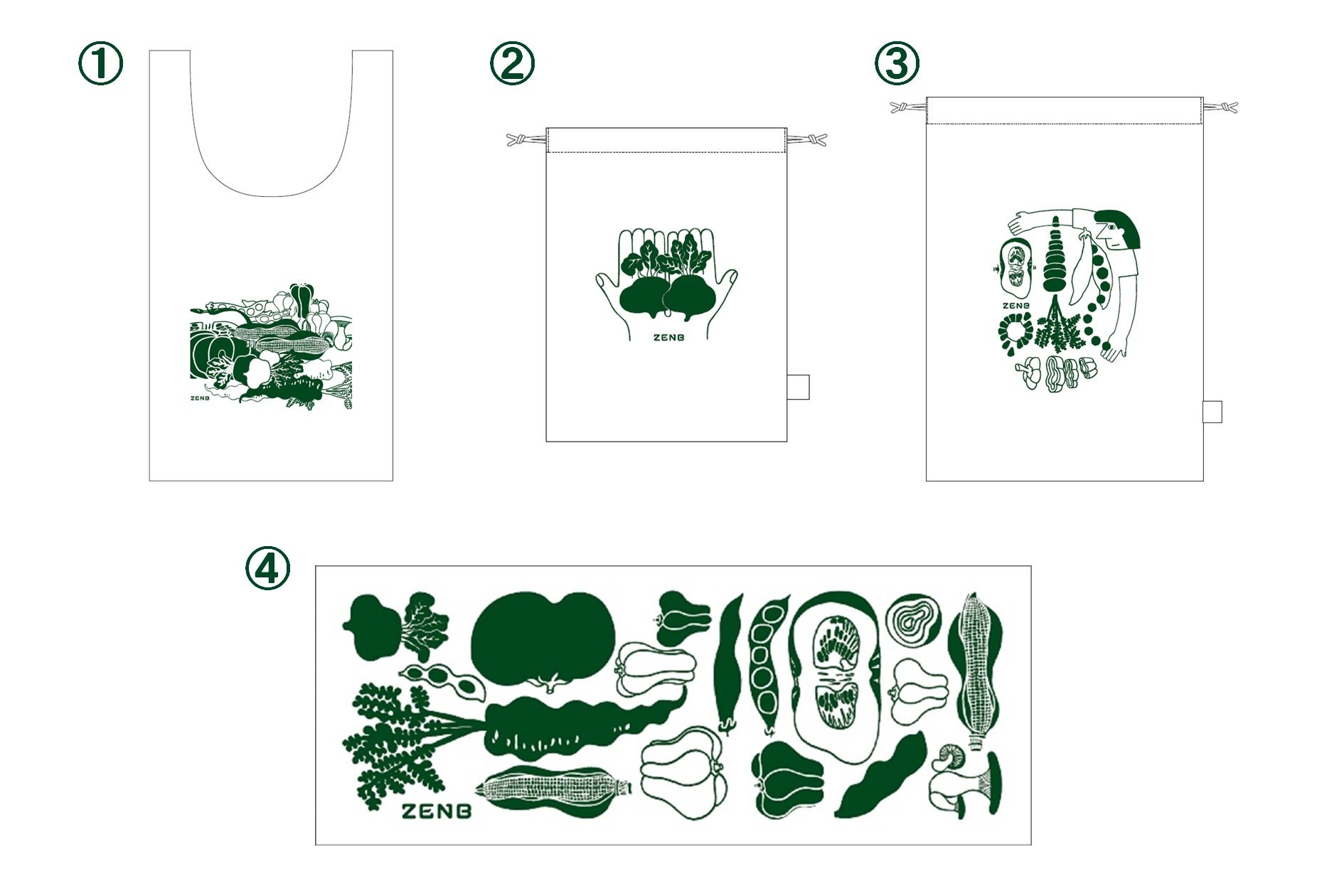 ZENB商品23品、オリジナルグッズ4品を販売します。普段オンラインでしか手に入らない、グルテンフリーのまるごと豆粉パン「ZENBブレッド」3種は各1000個の数量限定販売となります。