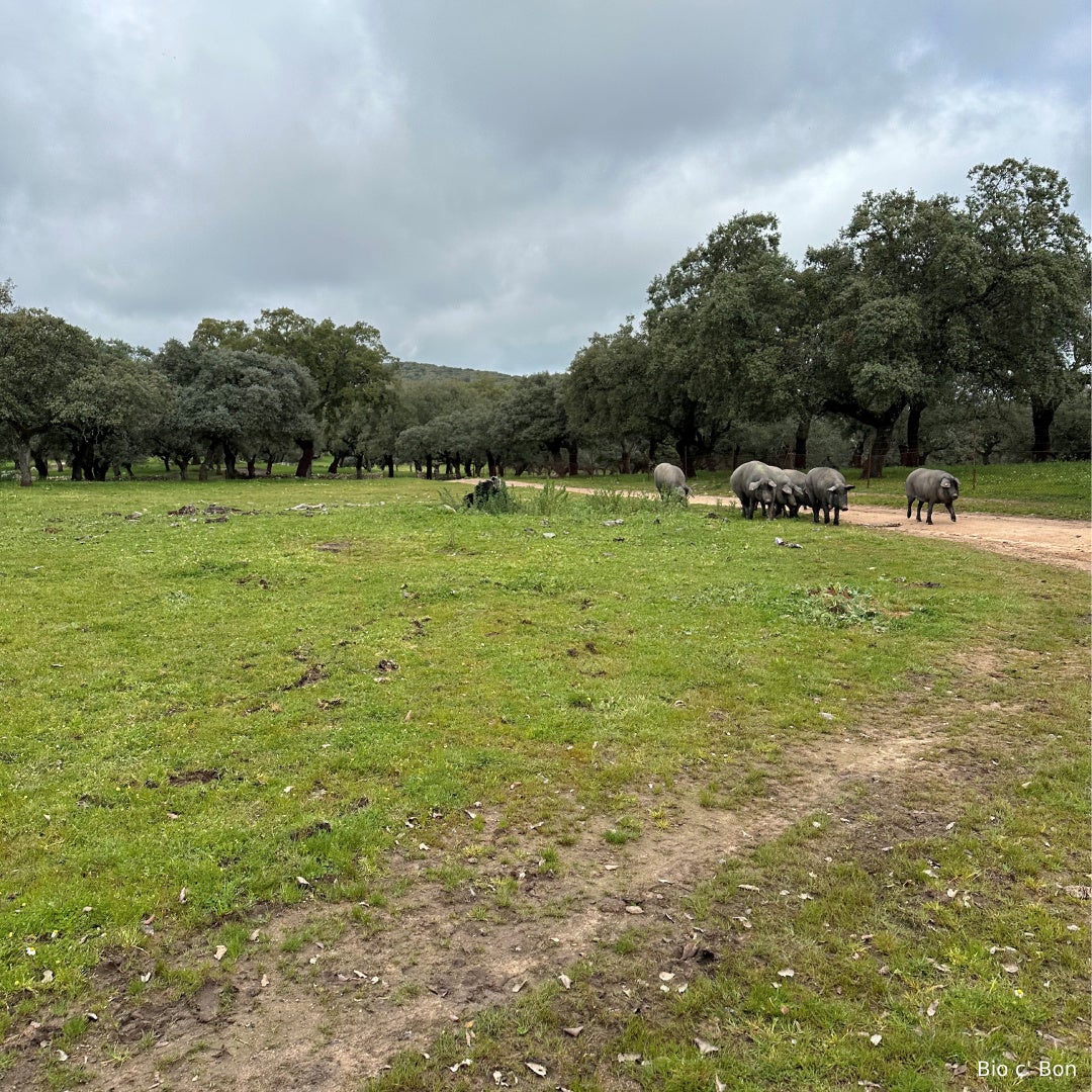国から飼育指定地域に指定されているポルトガルの国境沿いスペインの南西部、エクストレマドゥーラ州バダホス県で肥育から出荷までを一気通貫で行う企業です。一大生産地であるこの地域でビオかつ、純血100%イベリコ豚の生産者はたった2企業、うち輸出基準を持つのはSDMのみという希少さです。