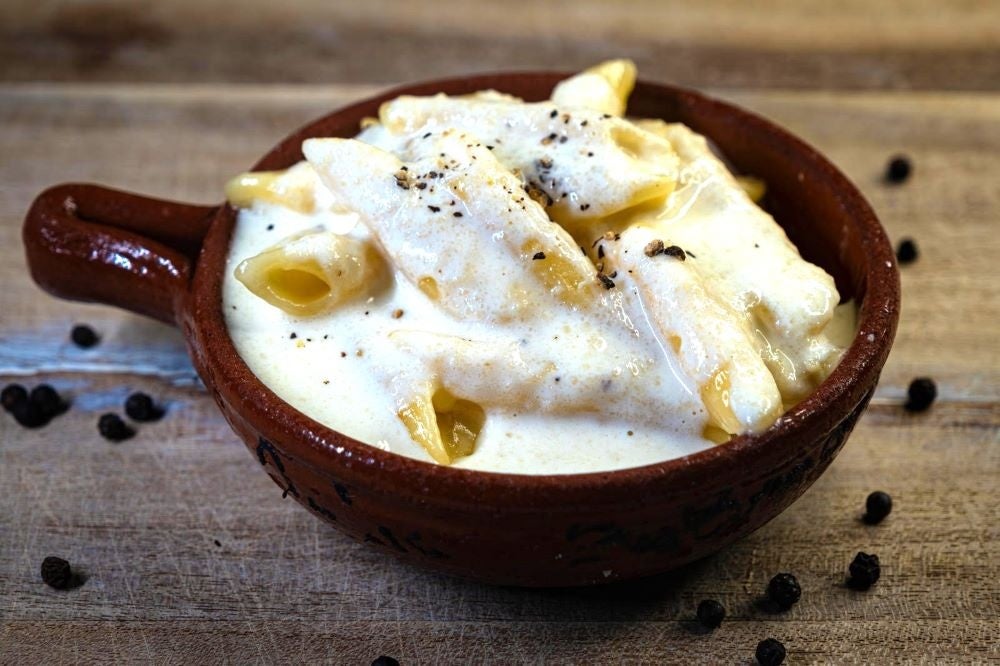 サルデーニャの濃厚なペコリーノチーズと〈ファットリアビオ北海道〉の国産チーズを使ったローマ3大パスタの一つ。濃厚なチーズのバランスが至極の一品。