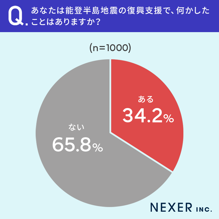 34.2%と3割以上の方が「能登半島地震の復興支援をした」と回答しています。