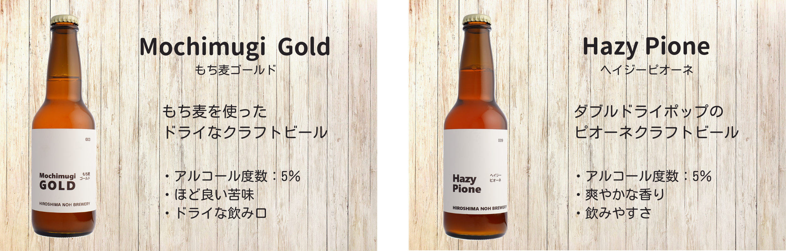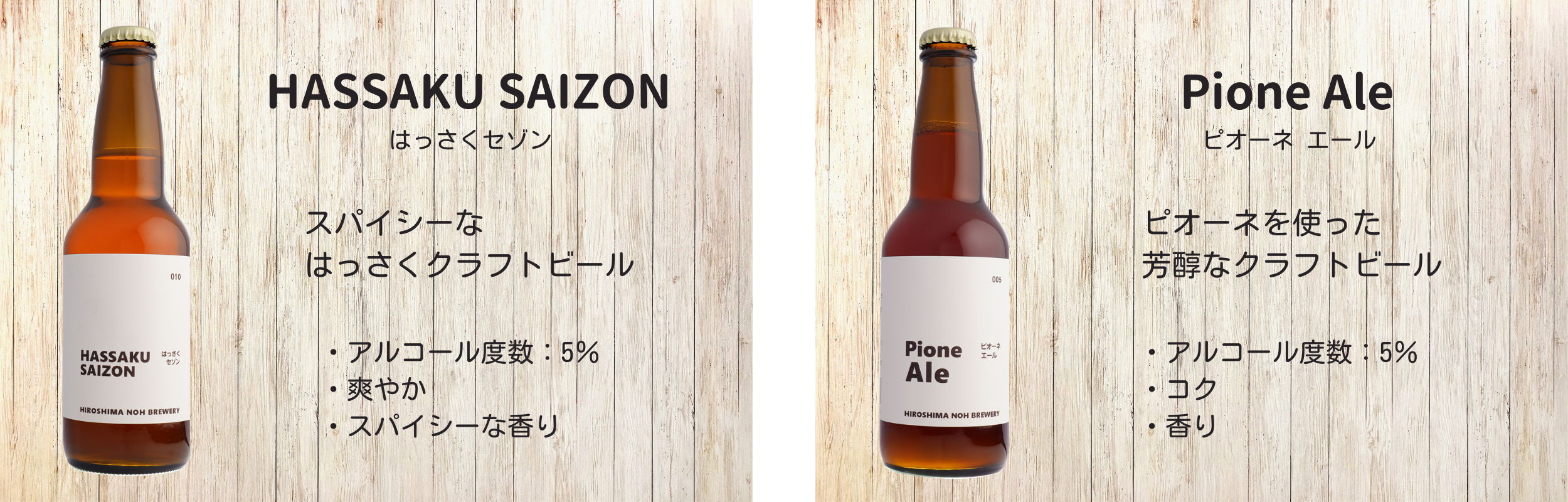 HIROSHIMA NOH BREWERYが作る、さまざまなスタイルやフレーバーのクラフトビールをぜひお楽しみください。
