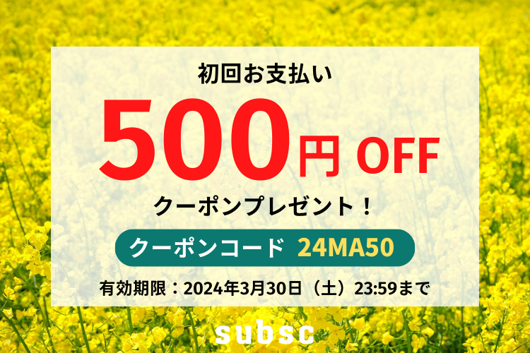 ぜひこの機会にsubsc(サブスク)でのお買い物をお楽しみください!