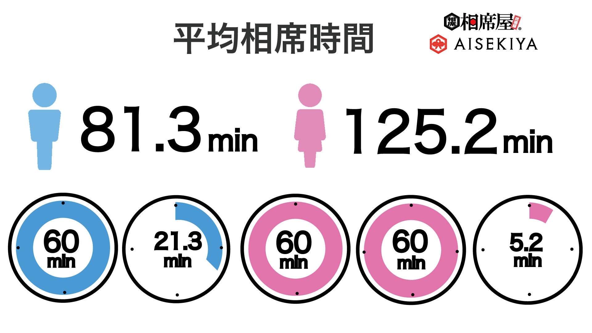2024年2月の相席屋平均相席時間は男性81.3分、女性は125.2分となりました。