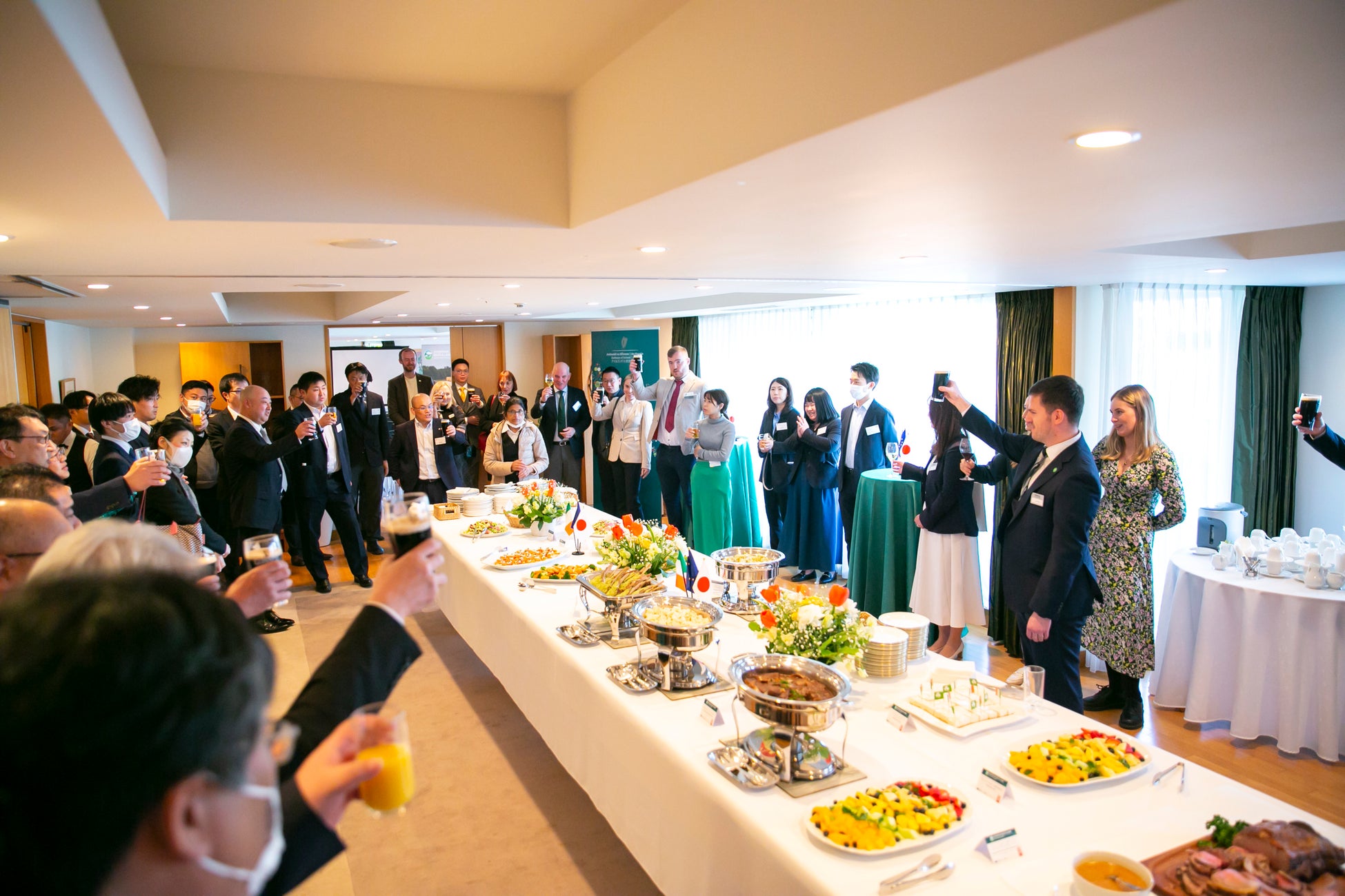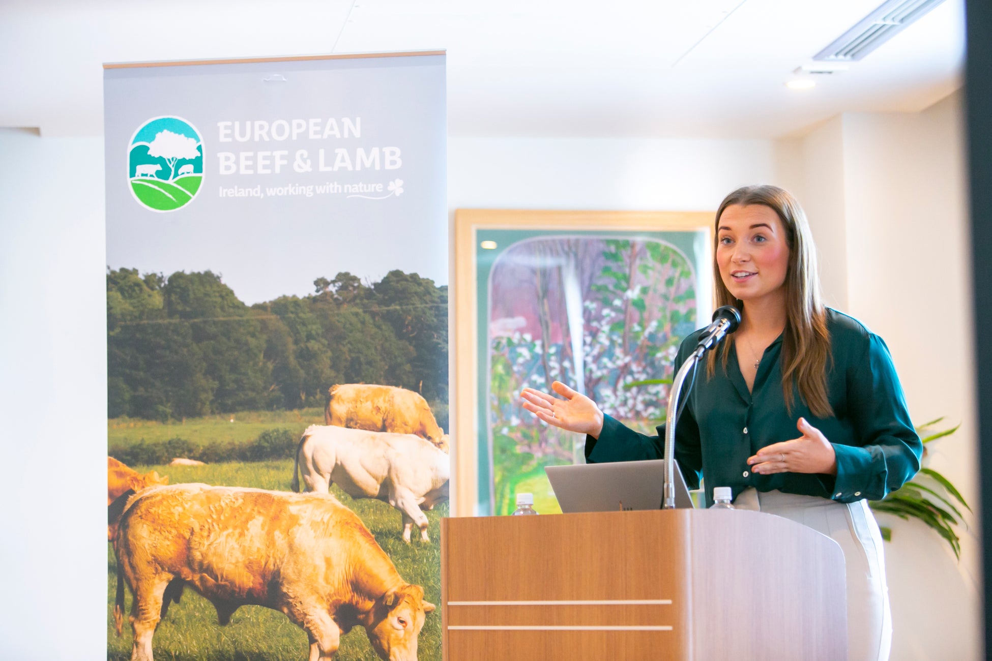 セミナーでは、日本市場スペシャリストのカレン・バリフ氏がボード・ビアの日本での活動報告をアップデート、続いて、この日のために来日した、ボード・ビア食肉セクター代表のショーナ・ジャガー氏が繁殖技術を中心に、最新のヨーロピアン ビーフ&ラム・セクターの展望、アイルランドの酪農家は伝統と最先端技術を融合させ、肉牛繁殖の最適化と効率化を図っていること、アイルランド肉牛生産者連盟(ICBF)は、すべての家畜の遺伝的価値を評価するDairy Beef Indexを提供しており、酪農家は、分娩が容易で、妊娠期間が短く、体型の良い、より良い肉を生産するための選択方法を知ることができることなどを説明しました。そして、調査会社GIRAマーケット・アナリストの西出香氏は、日本の食肉産業が直面している輸入の課題を掘り下げ、将来の需要に関する鍵となる洞察を発表しました。セミナーの後、実施されたネットワーキング・レセプションには、業界関係者34名の参加をいただき、ヨーロピアン ビーフ&ラムのお料理を堪能しました。