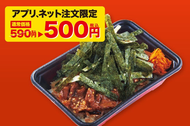 ◆商品:のりカルビ弁当 590円(税込) ※アプリ、ネット注文限定 500円(税込)