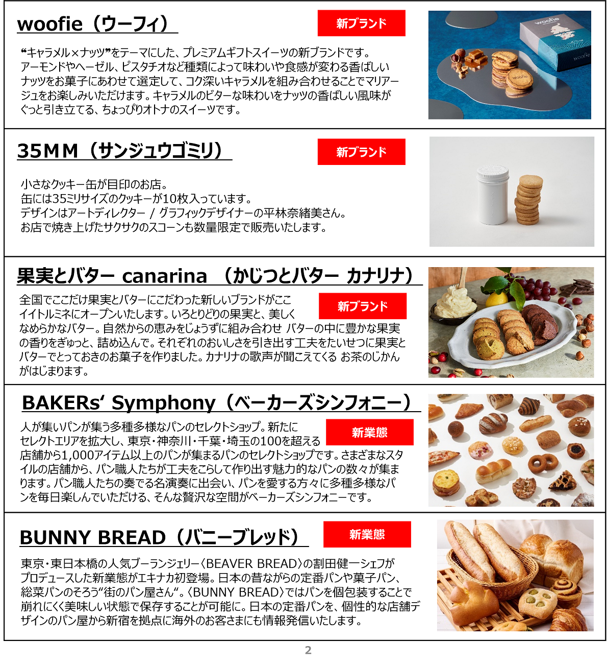 新ブランド・新業態が12店舗出店します。手土産としてもぴったりなクッキーやビターキャラメルナッツスイーツなど、イイトルミネにて新しく誕生するブランドが5店舗出店します。また、1000アイテム以上が集まるパンの