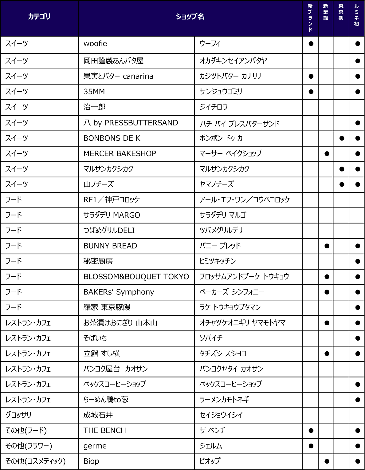 この度、新しく誕生したここだけにしかないショップや、東京初進出・ルミネ初出店の人気店、行列ができる路面店
