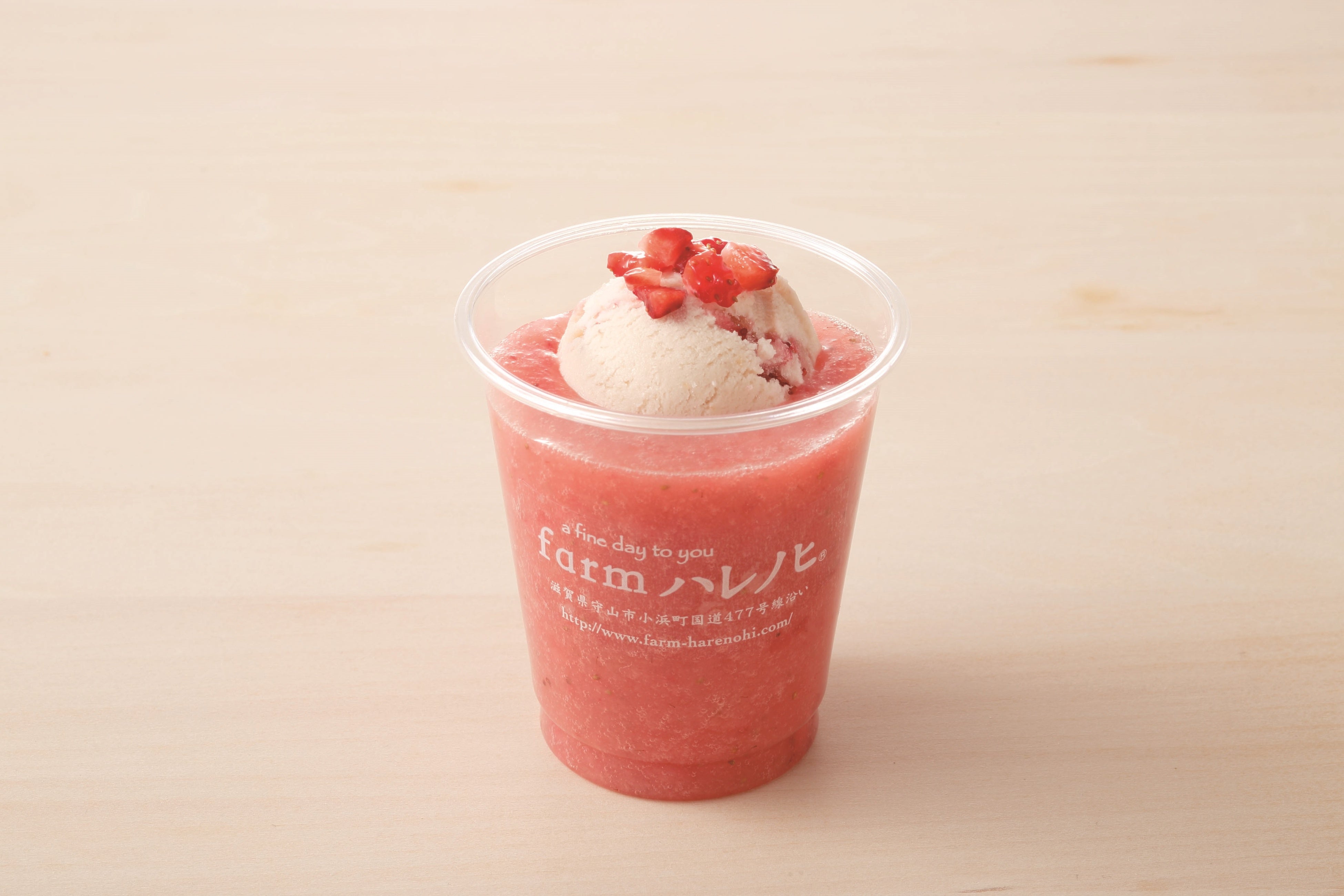 人気の苺100%ジュースに「みおしずく」を使用したミルクアイスをのせてフロートに。