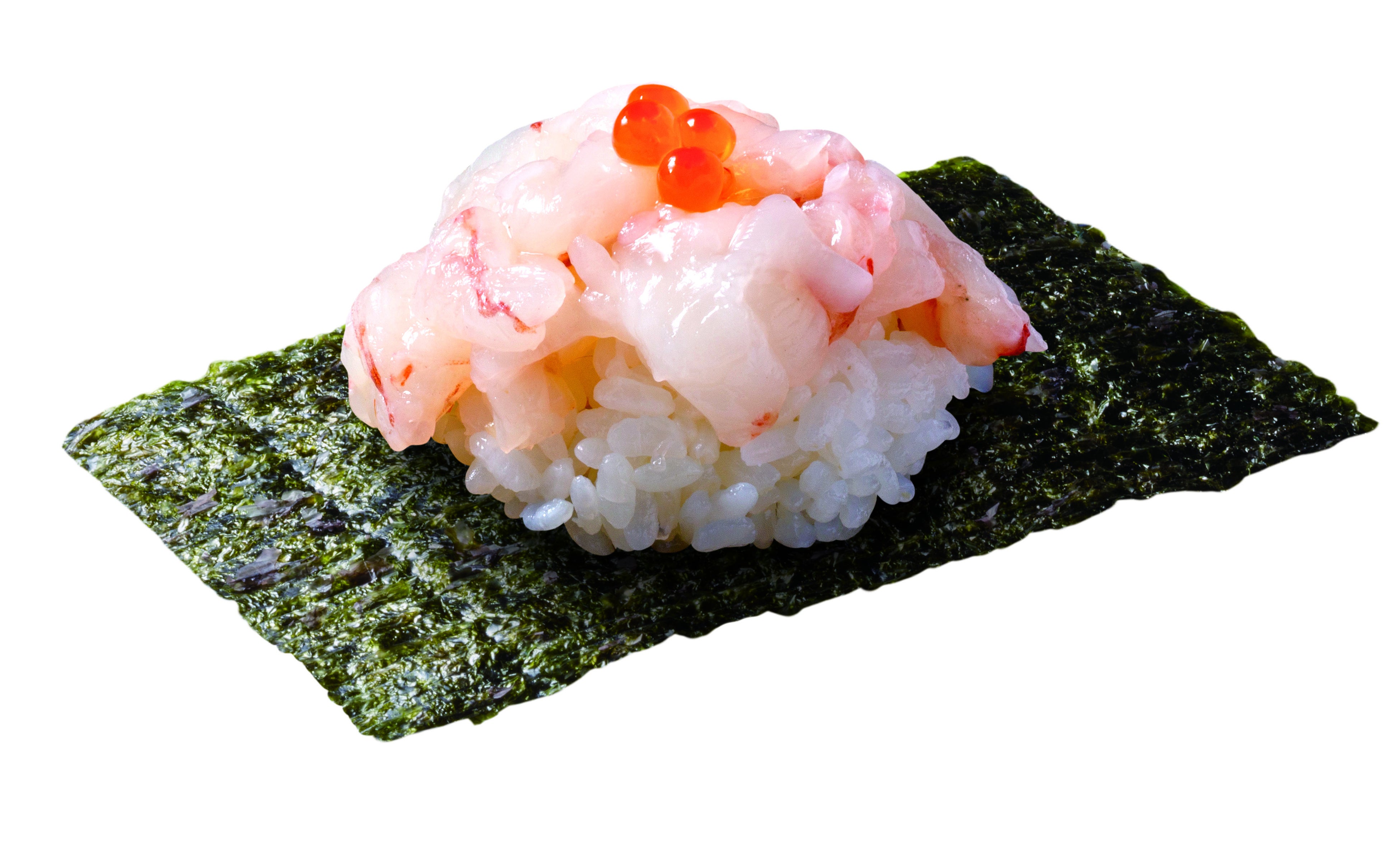 また、炙りえんがわの甘みととろけるような脂をお楽しみいただける「山盛り炙りえんがわつつみ」、ぷりっぷりの赤えびにいくらをトッピングした「山盛り赤えびつつみ」を150円(税込165円)でご提供。至福の一貫シリーズからは、最高級ブランド牛の柔らかい身と甘みのある脂をご堪能いただける「大切りいわて牛五ツ星握り」、大切りの中とろを贅沢に2枚重ねた「大切り重ね中とろ」が登場します。第2弾も多数の“ビッグ”な旨ねたをどうぞお見逃しなく!