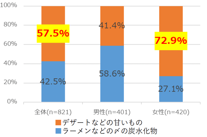 Q. あなたは飲み会や複数人での食事の後にもう一軒いくとしたら、ラーメンなどの〆の炭水化物か、デザートなどの甘いものか、どちらかというとどちらを食べたいですか?
