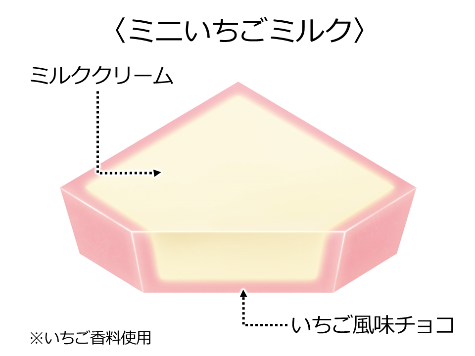 甘酸っぱいいちご風味チョコとクリーミーなミルククリームを合わせました。