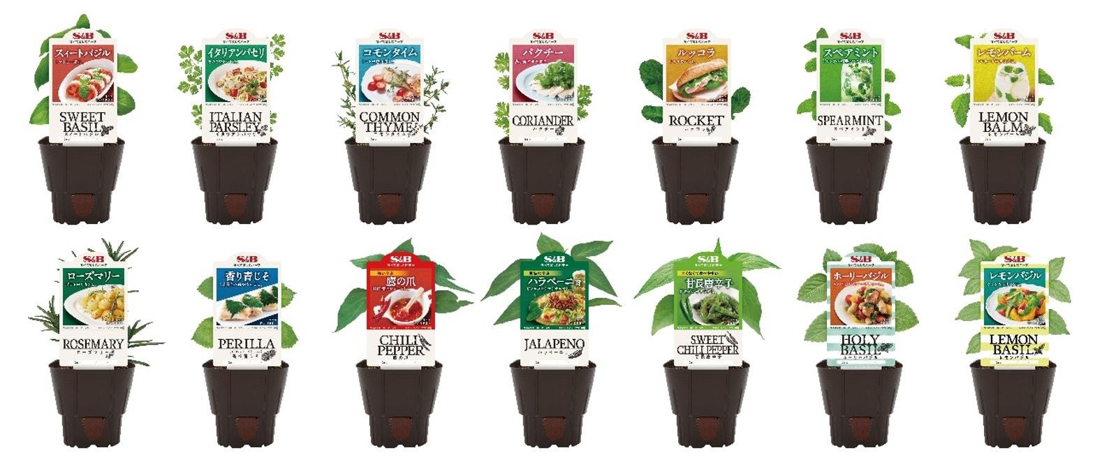 ・「S&Bハーブ苗」を含む、当社フレッシュハーブ製品のラインアップ