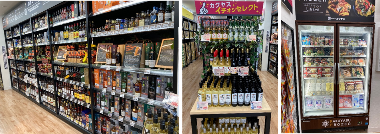 今回のリフレッシュオープンでは、冷蔵ショーケースなどの什器の入替えや内装の修繕を行うことで店内が明るくなり、これまで以上にお客様にお買い物を楽しんでいただける空間となっております。また、170店舗以上を運営する当社の強みを活かした充実した商品ラインナップは、ウイスキーやワインを強化いたしました。さらには、「お酒だけじゃない!カクヤス」の展開として、冷凍食品やおつまみなど酒類以外の商品も取り揃えております。即日配送サービスも引き続きご利用いただけますので、重たい荷物はもちろん1本からお届けいたします。