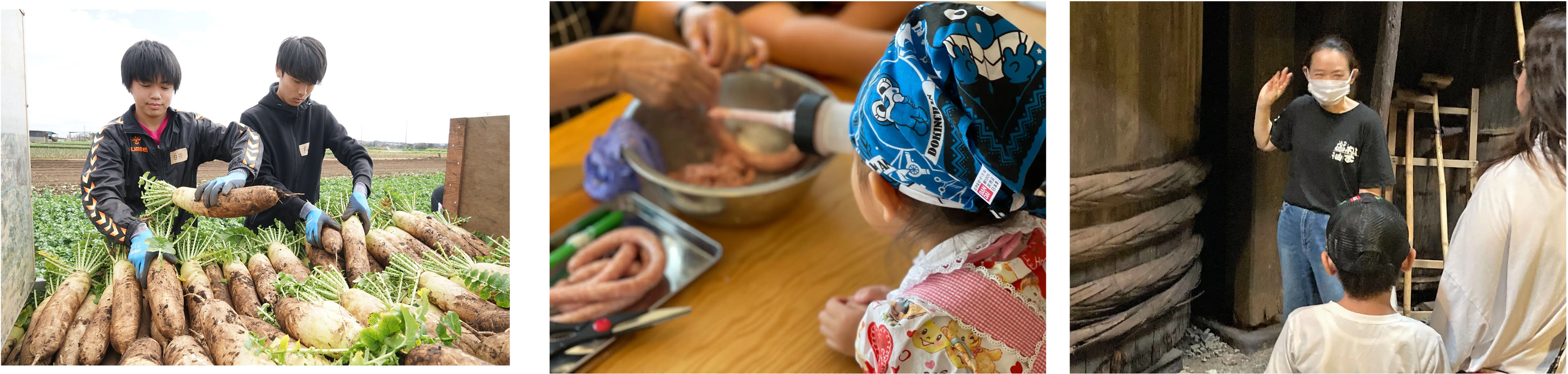大根の収穫、ウィンナーや豆腐づくり、醤油の蔵の見学など、食の現場での体験を通じて、食への関心を持ってもらうと同時に、思い出になるように取り組んでいきます。