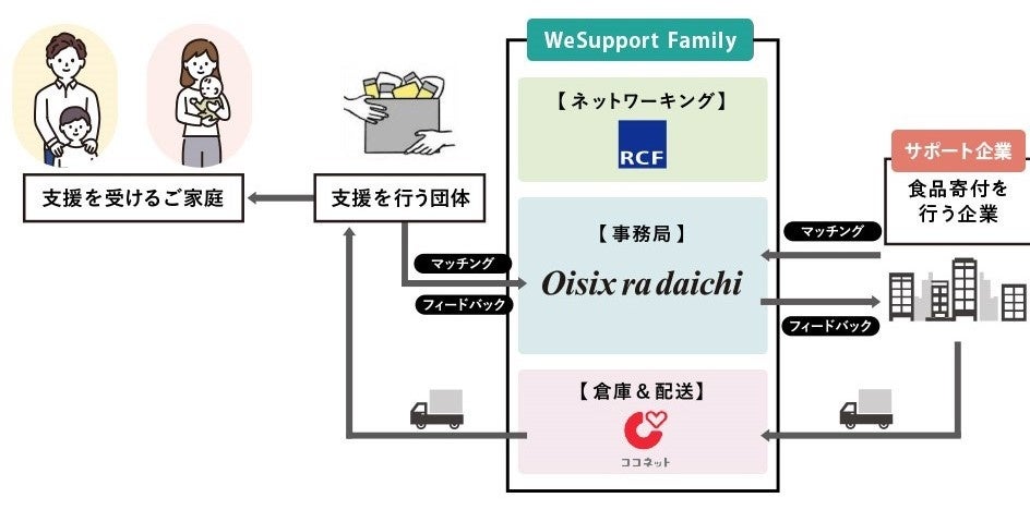 ■「WeSupport Family」の仕組み…2万5千世帯に定期的に食品を寄付