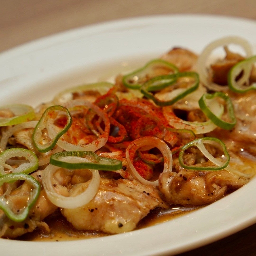 【鶏皮】余分な脂を落としてコラーゲ ンのみを残し、美味しいパリもち食感に。