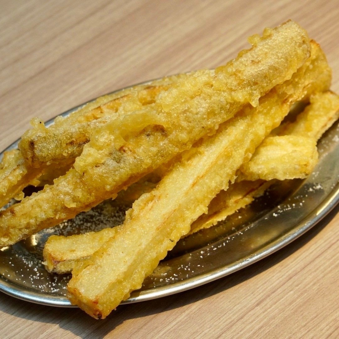 グループ店の人気メニューを採用!かき揚げではなく長さを活かした一本揚げ!佐野塩でサッパリ召し上がれ!