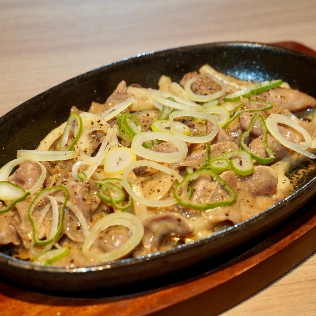 登録商標取得済。アツアツの鉄板で塩タンをジュウジュウ焼いて。食欲をダイレクトに刺激する一品です!