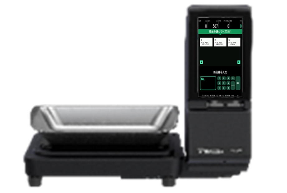 また多くの実施店舗からも今後も継続していきたいと賛同のお声をいただき、新規店舗からも量り売り導入希望のお声をいただきました。しかし、既存の実機では都心型店舗の狭いバナナ売場への設置は難しいケースがありました。そのような課題を受け、今回、より多様な店舗にて量り売り販売を実施していただけるよう、小型量り売り機の導入を開始いたしました。小型量り売り機は、従来の15インチモニターを8インチまで小型化しながら、機能性としては通常機に劣らない仕様になっています。