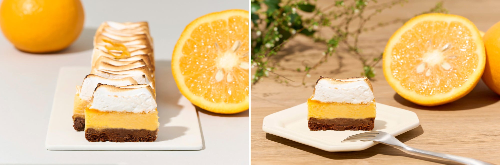 ジューシーで甘酸っぱい旬の甘夏を、なめらかなチョコレート生地と楽しむ生ガトーショコラができました。トップに添えた、優しい甘さですっと溶ける口溶けのイタリアンメレンゲと合わせて、春ならではの軽やかな柑橘スイーツをぜひお楽しみください。