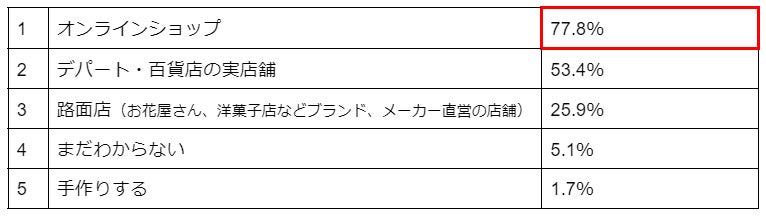 多忙な生活を送る中で、時間や場所を問わずに色々な商品を検討できる「オンラインショップ」で母の日ギフトを購入したいと答えるユーザーが7割を超えました。時間を有効活用するタイパ志向は、ギフト選びにもみてとれます。