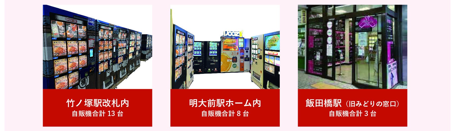 ◼︎飯田橋駅 自販機合計3台 ※1日の駅利用者数 約110,000人