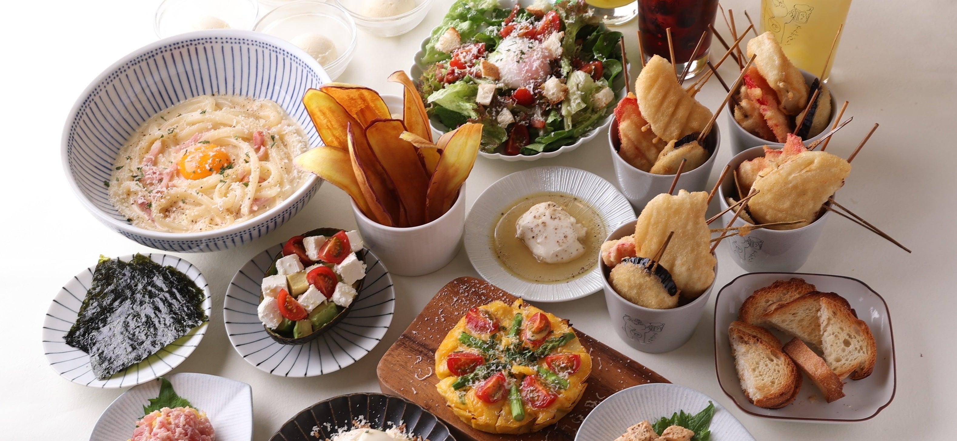 みんなでシェアするにはぴったりな、「温玉シーザーサラダ」や「自家製さつまいもチップス」、人気の「トロたく」や「マスカルポーネはちみつかけ」も是非お召し上がりください。